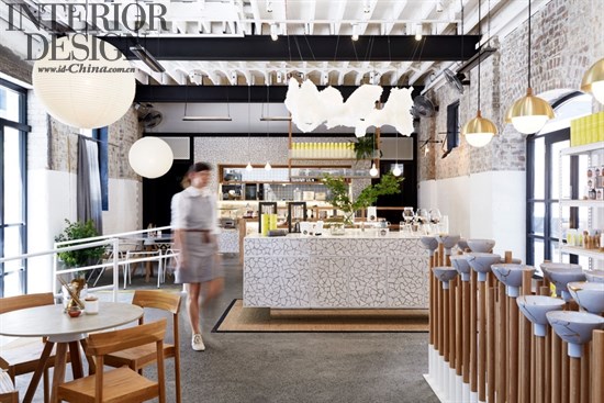 此茶吧项目的设计充分利用了原工业用地的内在结构。在原始结构的基础上,混凝土地板进行了抛光;加以支撑的人字形木料天花板被暴露出来;原来的砖墙也裸露在外部。在空间的刚性设计之上,通过这些新的暴露出来的元素的白色洗刷,室内的柔性得到了加强;另外,通过扩大东北方向面向着窗子的空间,明亮的自然光可以如洪水一样涌入室内。
