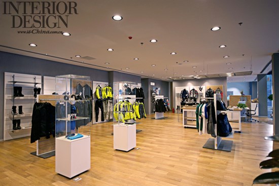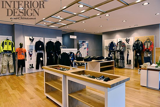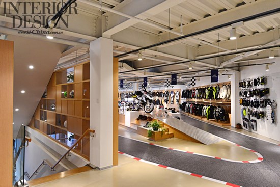 整个展厅的颜色以白色加橡木棕,是宝马Life Style全球一致的色调。不同于其他摩托车品牌,笼罩重金属的感觉中,这种清新风格给出了解摩托车的另一个新途径:更加连接自然,愿意保护环境。贯穿整个展厅暴露建筑结构桁架的天花与摩托车外露的金属机械车体骨架产生协调一致性的美感。