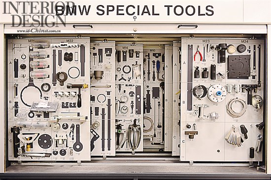 精品区提供的商品及配件展示平台,货架使用穿孔的面板加挂臂支持,使各种不同类型大小尺寸的产品都可以得到非常好的展示效果。如此,从建筑到室内到产品,无时无地都感受到一气呵成的宝马品牌。这样满足客户想要拥有的欲望并创造了丰富的品牌体验。正如宝马摩托车slogan体现的“MAKE LIFE A RIDE”。