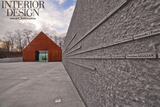 在博物馆的布局组织之内,除了形式,还有纹理和材质等其他元素呈现着与博物馆信息相关的内容。极简而又抽象的建筑形式令游客触发了某种情感与共鸣,带着禁欲主义风格的外观使人联想起住宅。寓意爱与安全感的家,其象征性的视觉形象与表达焦虑和恐惧的构成形态形成了强烈对比。博物馆采用钢筋混凝土建造,腐蚀生锈效果的耐候钢板贴覆于外立面上,暗示着时间的消逝。带着嵌入地形中的建筑形式和所使用的材料,博物馆与周围环境融为一体。作为村庄环境和悠久历史的一部分,它使游客回想起战前的Markowa历史和生活。博物馆不仅回顾了犹太人大屠杀的那段时期,也揭示了人类勇于对抗命运和历史的不平等的本性。