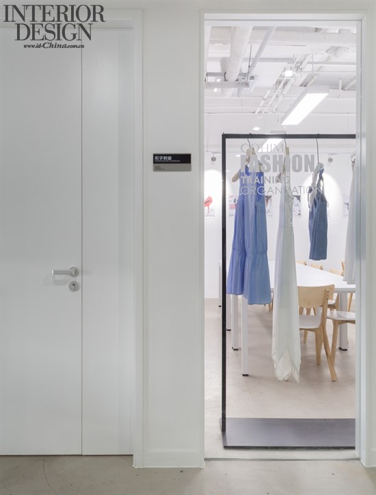 三层的空间中集合了软装设计、橱窗设计、时尚买手、陈列管理、设计师公共基础课程的理论教学空间,也是工作人员的办公区域。在办公与教学区之间,若干个小型会议室的设计便于学生之间沟通与合作。学校希望为学生所做的不是单方面的输出,而是搭建共赢与合作的平台。