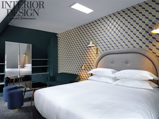 Meilichzon内部设计的一个中心是对于某些主题的有趣运用,最重要的是多角形的形状运用,从墙纸到瓷砖,从酒吧桌和浴室里的六角形都加强了这个主题。而图形中最突出的是八边形,由于Pigalle在地图上的形状所以八边形被视为其象征。其他的基本图案和Experimental Group对于鸡尾酒艺术的诚意联系在一起:流通区域定制编织的地毯具有马丁尼酒玻璃瓶的样式,卧室的黄铜门环类似于凤梨的形状。这些奇形怪状的细节连同其他诸如带有皮革流苏的老式金属钥匙令Grand Pigalle Hotel变得与众不同,既带有有趣的性格又带有冷静朴素的温和。