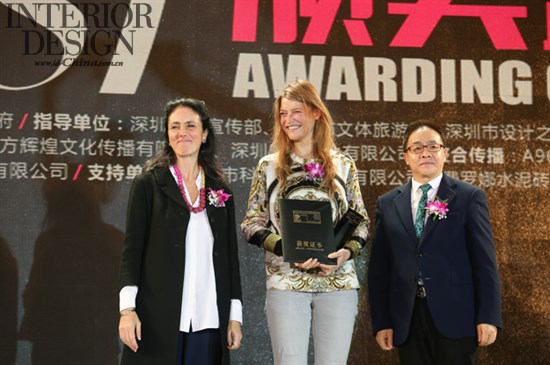 美国麻省理工学院客座教授、C+S设计公司总裁Maria Alessandra Segantini(左)、深圳市室内设计师协会会长洪忠轩(右)为获奖者颁奖
