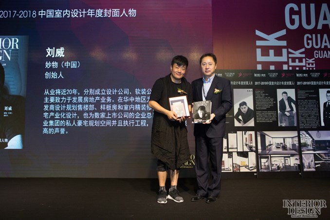 获奖者妙物(中国)创始人刘威与颁奖嘉宾美国《室内设计》中文版董事长、出版人赵虎