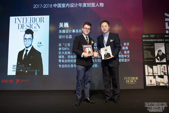 获奖者吴巍设计事务所设计总监吴巍与颁奖嘉宾美国《室内设计》中文版董事长、出版人赵虎