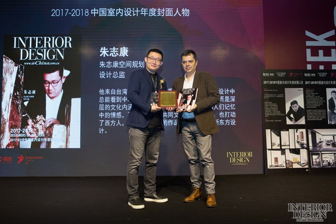 获奖者朱志康空间规划设计总监朱志康与颁奖嘉宾ICC瓷砖产品研发总监塞巴斯蒂安