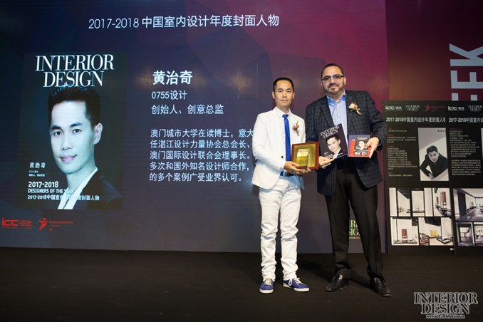 获奖者0755设计创始人、创意总监黄治奇与颁奖嘉宾ICC瓷砖总经理汉贝托
