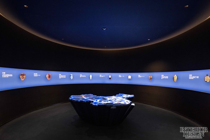 如何让这份伟大的传承为今天的观者所感知、所共情,这是叙事手法的关键。空间可以有限,而想象则是无限。松果设计在展览内容的梳理上,最终以六千年的时间轴为原点,精炼了不同文化维度的内容作为切片,一一串联,并通过不同的空间形式和展陈技术,以全息影像、3D Mapping、人机交互和动态悬浮装置等等创新手段来予以呈现。