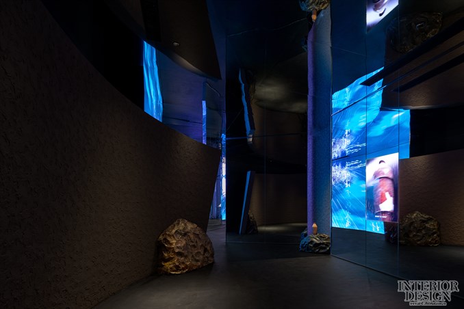 幽光映照着粗粝的岩石和干裂的泥土,黑暗中的展览序厅显得神秘又令人兴奋,喻示着我们即将从这段时光秘境的探寻开始。当镜面反射的隐形门缓缓开启,一段厚重的历史瞬间被激活了,多媒体影像似乎成了叙事的主角,迂回的动线和镜面隔断则增加了空间的层次感,以及各个版块的独立性。数字艺术在空间中变幻莫测,现代科技与古老的仰韶文明在这里实现了时空上的碰撞。