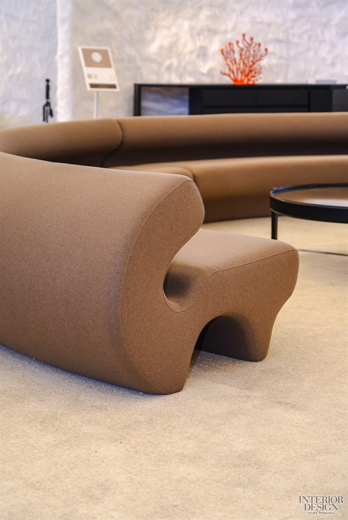 这次我们为酒店展的客人重点推出了一组大型沙发组合。这件产品不仅在国内备受关注,甚至吸引了海外建筑事务所的目光,目前在阿根廷已有项目落地。