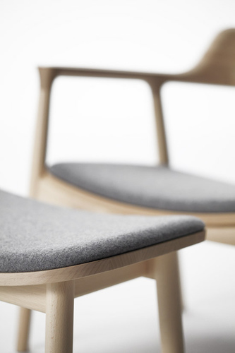 日本设计师深泽直人(naoto fukasawa)为maruni公司设计了最新的椅子系列作品,追求简单而舒适,名字叫做“广岛椅子(hiroshima chair)”。优质的木材经过精心打磨,配上柔软的坐垫,形成一种温润细腻的感觉。深泽直人曾在一次访谈中谈到:“人们所获得的是一种类似于乌冬面般的介于韧性与弹性之间的感受。”这句话可以让人更容易了解到这把椅子形式背后的意蕴。
