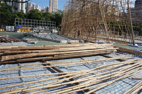 彩灯主要用上左香港地道搭棚的技术,用竹枝搭建出整个巨鱼灯笼。用上竹枝的原因,是因为它够灵活性又可以循环再用,够环保。