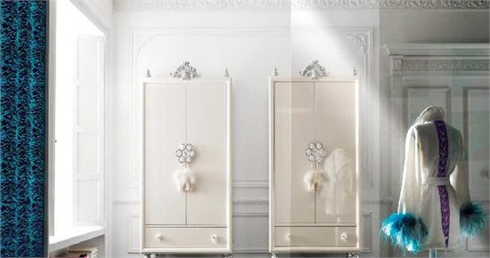 这是一款由Altamoda使用流行元素装饰的高雅奢华卧室设计。卧室内有一张圆床,床上覆盖了一层极为柔软舒适的纺织面料,这样的设计使床显得极尽奢华。搭配由施洛华世奇水晶装饰的紫罗兰色床头柜,显得和谐统一、风格一致。除此之外,卧室内部还有风格独特的白色盥洗盆和浴缸。浴缸和盥洗盆上都装饰着迷人的花饰,别出心裁。这样的卧室,会不会打动你心呢?