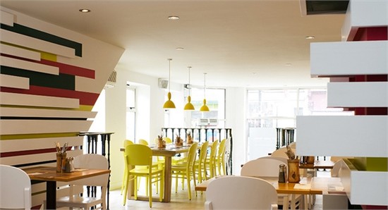 这家由Lifeforms Studio.设计的“橄榄地球餐厅”位于伦敦巴特西,色彩搭配着实让人眼前一亮,餐厅内部设计十分现代,1800平方英尺的宽敞空间以现代材料与明亮色彩打造出典型的地中海室内装饰风格。墙面装饰性的图案颇具艺术感,与各式家具一同组合成一幅既现代又不乏生气与创意的生活图景。