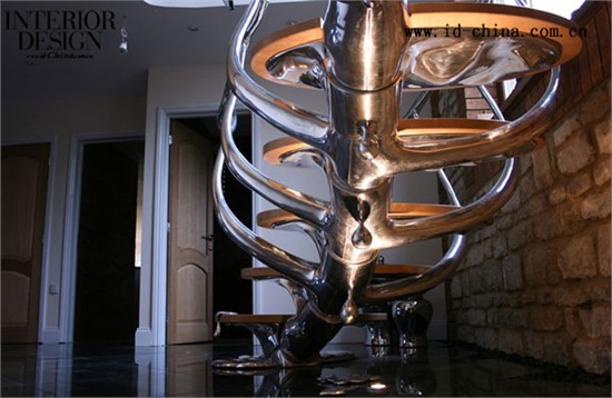 Philip Watts Design的作品系列涵盖各个方面,包括建筑五金,照明,当代卫生洁具。但今天真正吸引到我们眼球的,是这件特殊的雕塑楼梯。细节采用玻璃和木质材料,是为北汉普顿的一座私人住宅特别设计的室内定制作品。其令人叹为观止骨架结构,在两层楼梯间扭转回旋,最后似乎又融进较低层的金属挖槽中。你不觉得它有种特别真实的科幻效果吗?这肯定是你看到过的最有创意的楼梯之一吧!