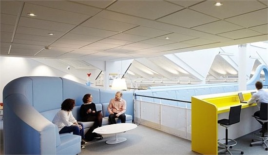 说到乐高积木,不得不提丹麦Billund的乐高新总部,完全契合公司形象与理念,办公楼便是一个充满趣味与缤纷色彩的游乐场!这一室内设计理念由丹麦公司Rosan Bosch 与Rune Fjord提出,新的总部分两层,两个夹层在酷似管道的中转站顶部连通,整个办公楼以内嵌盆景的桌子、以青草装饰的墙壁、色彩缤纷的家具及裙房等等,布置了满满的童真乐趣。