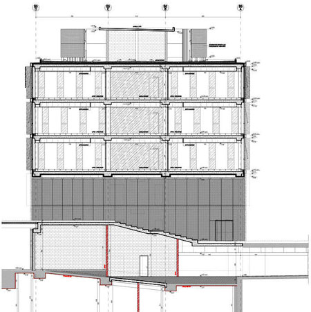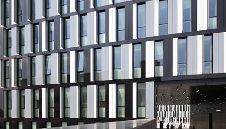 B5办公楼获得了"A级"(相当于LEED白金级)评分,面向内部庭院的那部分立面有着可移动的面板,能与墙面呈90度,用户可根据需要来调节外部的遮阳板。这些可移动的面板就像鱼鳍一样,实现了高度的灵活性,也塑造出不断变化的立面形象。