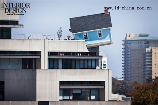 眼前令人大为赞叹的浅蓝色房屋---“坠落之星”平衡得置于一幢现代建筑的顶楼边缘上,从2012年6月7日起,正式对来访者开放。韩国当代艺术家Do Ho Suh用位于加州Jacobs厅平面屋顶边缘上的这座特定场地装置探索着我们对家的概念和对周围环境空间的感知力。这位出生于首尔的艺术家现居纽约市,已致力于该项目七年之久,而今天项目完成并骄傲地装饰着顶楼的角落。采用了美国最大的起重机中的一种将装置举起,今天人们便可近距离的看到它在空中的样子。“坠落之星”重达70,000磅,从无到有的建起来。起重机将它举起安置在加利福尼亚大学圣迭戈分校大楼之上,“坠落之星”实际上是对校园内已30年之久的斯图尔特特定场地系列雕塑的补充。15英尺乘18英尺,这座圣迭戈校园内的新英格兰风房屋仿照了罗德岛的真实住宅而建。