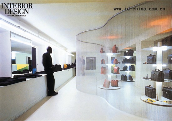 位于著名的圣欧诺黑路的鸳鸯巴黎旗舰店(Mandarina Duck)就是一个很好的例子。概念、开放、友好、色彩体现着其始终坚持的品牌精神。通透,纯净,色彩且直接的空间设计强调出这个300 平米的店面没有建筑结构的特点——零售商能通过各个角度以不同程度的可见性展示他们的商品系列。完整的空间布局在统一的明亮色调风格中又巧妙地区分出段落各自的独立特性,考虑到顾客的消费体验并为不断激发参观者对产品的发现之旅,设计中尤其强调了白色与特选色灯的配合应用。为解决空间大的现实,展示空间没有采用通用的普通场景照明,而是在光线分布上体现“松与紧”、“明亮与哑淡”的视觉对比,通过点线面的光线构成排布让灯光设计在空间气氛营造的运用上发挥到极致。乳白色的墙及天花板,为商品和饰品提供了清静的颜色并可以在任何环境中摆放的背景基础。红黄相间的橡胶圈墙,黄绿黑相间的升降梯,黑色的针墙镶嵌着红色的皮具,干净的背景与不同片段区有层次的色彩构成了不同质感及视觉效果的对比,带着斯巴达式的清澈,明亮。这些体贴于心的照明设计在达成有力的表现手段基础之上,更于细节中传递出对消费者使用时的关切之意,并完善着概念旗舰店对品牌定位,品牌风格的阐释。