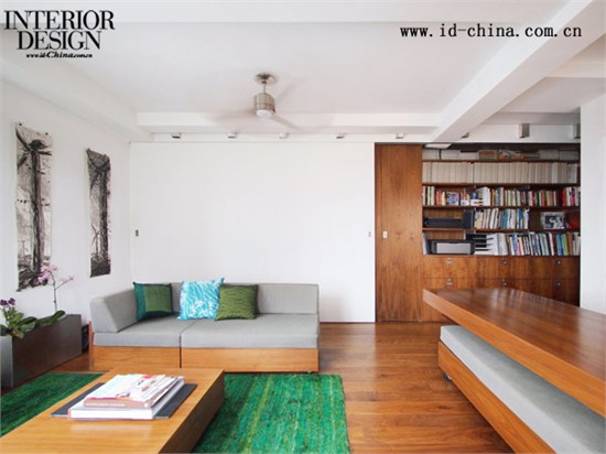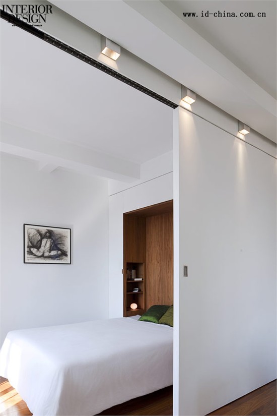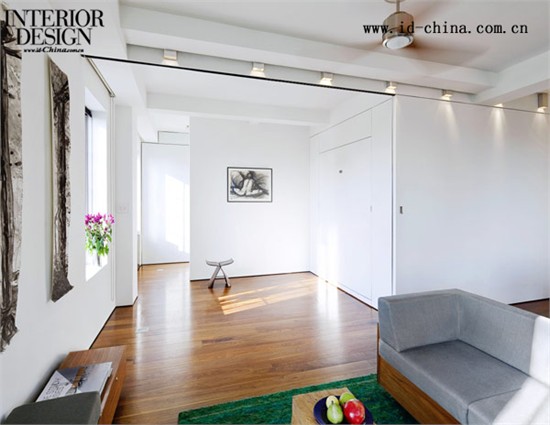Garneau工作室最新项目,将废弃的战前工作室公寓改头换面,效果惊艳。设计师想创造出洁净简单的光与空间之宅,在视觉上抛却室内设施可能带来的负担感,愉快而轻松得服务日常生活所需。设计方案是创造出灵活自适的迷你LOFT,每个单独开放的大型空间,提供功能性支持的同时仍强调周围一览无余的景色。外部嵌入木制平静的白色与室内苍茂的核桃木色想成对比。陈列柜从地板延伸至天花板,弯曲滑动处,中轴处,或遮掩或开放随需而变。滑动墙将卧室从客厅隔开,展现图书室或家庭办公室。倾下墙基则出现核桃色覆盖的带有床边壁龛的休息角。盥洗室瓷砖墙面朝向暴露着的桃木色洗衣篮和亚麻壁橱。轻点秘密隔间中的一个按钮就能将普通桌面瞬间变厨房台面。