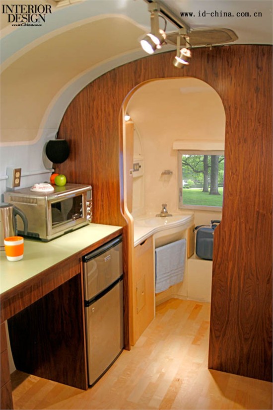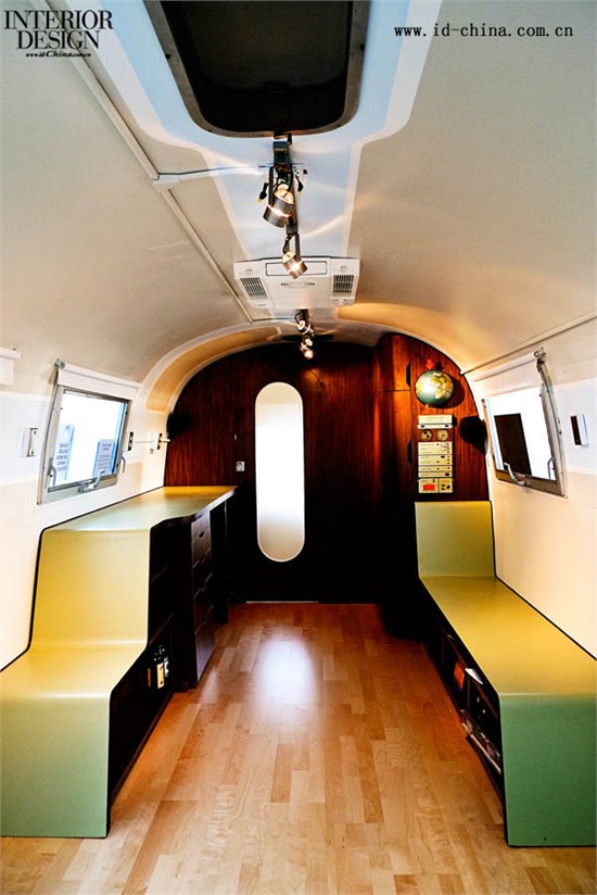 眼前这间Airstream房车(美国清风房车)近日成为Able And Baker Design的主要项目焦点,由美国国家航空航天局1968年阿波罗11号房车为灵感,这件翻新房车项目由事务所合伙人Jen Zahigian分享给热爱房车改造的朋友们。设计时考虑固定地点同时也设想有天停靠房车停车场,于是Airstream的电子系统设置了包括,新冰箱,对流加热炉,热水器,同时保留原有系统。将一个过时设计改造成Airstream墙面包围起来的开放,多功能空间,是个挑战。用订制铝双玻璃雨篷窗换下百叶窗,置入事务所木工场手工打造的橱柜和家具。角落里装上GPS全球定位系统,自动日式床滑下,一个木书柜就映入眼前。原有设计其中一项,悬在床上方的储物柜得以保留,里面嵌入两组扬声器。人们这么描述着Airstream房车项目:“Airstream文化历史快车上的一大进步。”它清新创意的设计将会影响Airstream未来车型的发展。