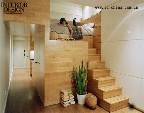 你一定看过许多精美装饰的小型商住两用公寓精彩作品。这又是一座小户型公寓,通过良好结构整合,放大空间营造舒适氛围的极好范本。这座East Village Studio Apartment由JPDA建筑事务所设计,构成了房主工作和生活的全部空间。它拥有着普通现代住宅所具备的所有设施,甚至更多。这间独特的小公寓在最不寻常和意想不到的地方拥有充足的储物空间,化繁为简的同时增添了洁净清新之感。实木家具,阶梯式储物床与随处可见的植物为室内带来温暖,阶梯式储物床由实木梯度箱组成,节省空间同时增添了居住趣味。