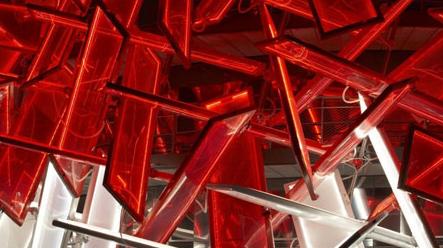 参观者还可以从屋顶中部下到展台的中心处,看到Jason Bruges工作室安装的灯光秀。这是用180个机电一体化的灯泡组成的灯光秀,可以跟着歌曲的轨迹来发光,而且当一瓶可口可乐被分享的时候,灯光还能放射出“兴奋”的光芒。