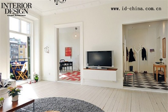 这座斯坎迪纳维亚风格三居室住宅共96平米,门厅与客厅良好串联,客厅深处连接卧室,厨房和书房。客厅灰白主色透着宁静,而花饰,咖啡桌,地毯,和吊灯则为空间带来一丝明快。小巧可爱的露台,设有三人木质桌椅,紧邻客厅,早沐晨光晚观星。厨房黑白格地板和书房红白格地毯呼应,整洁而俏皮。