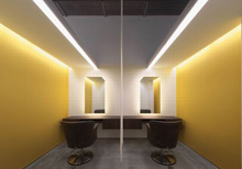 KUU设计的PacificDazzle美发沙龙,项目的主要思想是设计一个舒适的和非传统的空间,希望客人在进入店铺起可以感到放松,休闲。设计师选用了植物和水作为设计概念,未经修饰的房顶和地面,一个个小盒子形状的空间被植物覆盖,经过灯光的渲染,显得设计感十足,而白色的隔断则象征着自然界中的水,有绿植有水,变塑造了这个简约又独特的空间。