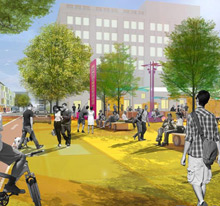 作为底特律市中心的一个知识经济区,“科技城”(TechTown)目前的状况是地产闲置、日益萧条,停车场都建在地表。为了复兴这部分城区,Sasaki Associates制定了一个“科技城区规划”(TechTown District Plan),推动创新和企业精神,在混合用途的项目中建造富有活力的社区。