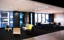 悉尼Group M办公室,旨在创造一个温暖,随意,自由的空间,可以激发员工的灵感,并让他们感到快乐。黑色为主题色的办公区域严谨又商务,路过一道有着大面积涂鸦的卷帘门,是休息区和就餐区,似乎这个涂鸦门是分界点,到了这样的空间就应该轻松随意,暖色的灯光使人心情放松,到处点缀的黄色调也带来了活力和激情。