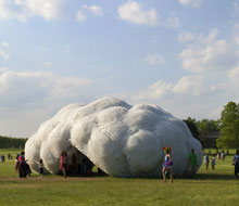 参观者可以进入这个空间内参观各种灯光和色彩从表面、内部和外部等多个角度漫射下来的效果。亭子的外部由很多形似枕头的牛奶罐构成,而内部则是由0.45千克或0.68千克的瓶子组成。