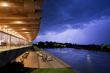 客房被放在13立方米的模块里,模块的外表皮是混凝土预制板,模块和模块之间有间隔,走廊将他们串起来。行走在走廊中,穿行在从模块中透过的光中。选择的材料都是天然的,营造的气氛如同上世纪50年代圣保罗农村度假村那般舒适低调,优雅朴实。
