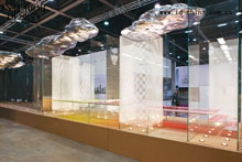 观众伴随着现场跳动的音乐旋律,踩踏、触摸这座由36米长的玻璃彩虹栈道构成的天空之城。新型玻璃的坚韧与多样性在这次展示中获得了直观的表现。头顶大片的云朵有效遮挡了展馆的环境光,更多的灯光效果来源于地面射灯照射在铝箔云朵上形成的漫反射,给人晶莹剔透又亲切温暖的空间感受。