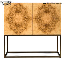 Ken拍卖行总裁Leigh Keno和索斯比拍卖行的高级副总裁Leslie Keno已经扭转了局面。作为(美国)公共广播公司长期播放的古董巡展秀节目中热情洋溢的美国古董鉴定专家,他们为“keno兄弟”展揭开了帷幕。其中这件“躲猫猫(Peekaboo)”屏风上可转动的圆形造型,采用了制作提琴背部的悬铃木和一种非洲硬木材料。而图中另一件产品是名为“舞蹈(dance)”的床边小桌,该桌由华丽的悬铃木林、银色的胡桃木以及锯齿形红木板组成。除此之外,自然形成的橄榄色岑木树节为一张由黄铜架支撑起来的对称式柜子营造出一种镜像效果。theodorealexander.com