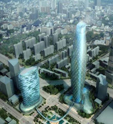 天津生态大楼的设计灵感来源于鱼骨的结构,建筑总高度超高了380米并且总的办公区域是167,200平方米。