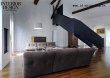 M2住宅内这座深黑色木质楼梯,连接室内空间通向阁楼。由意大利Bettinelli 设计事务所完成,这座楼梯将室内垂直空间延伸,宽大的木质结构作为上下空间的通道,直通阁楼,深色稳固,连接两层室内空间。