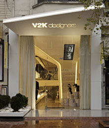 土耳其伊斯坦布尔的v2k服装店设计日期:2013-02-19 设计资讯V2K时装店位于伊斯坦布尔经典时尚购物中心Nisantasi,整个店面设计以白色为主,搭配黑胡桃木。V2K店面设计新颖独特,梯形门头设计看上去像雨搭,镶嵌白色发光LOGO。