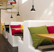 橄榄地球餐厅日期:2012-01-12 设计资讯这家由Lifeforms Studio.设计的“橄榄地球餐厅”位于伦敦巴特西,色彩搭配着实让人眼前一亮,餐厅内部设计十分现代,1800平方英尺的宽敞空间以现代材料与明亮色彩打造出典型的地中海室内装饰风格。